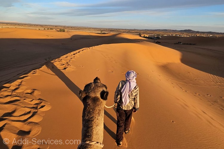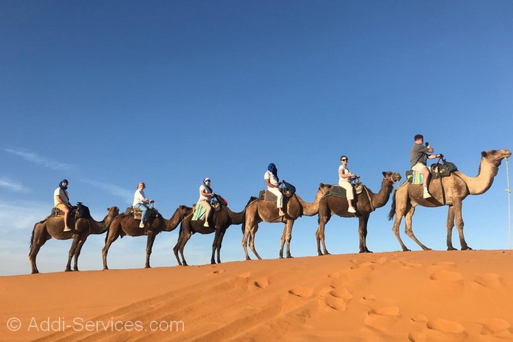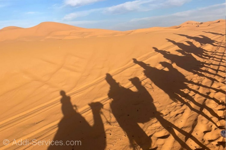 Hoy despuis de vers y tomar el Desayuno salimos del Campamengo en Camellos o en 4×4,en Camellos hacemos 1 hora para llegar al pueblo de Merzouga donde has dejado votro coche,y en 4×4 hacemos 15 Minutos y despuis todo este grande experiencia termina nuestro Excursions..